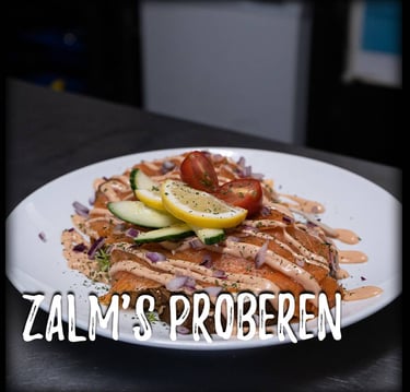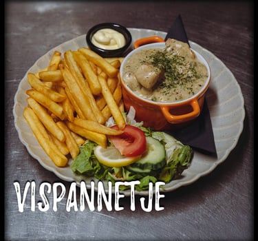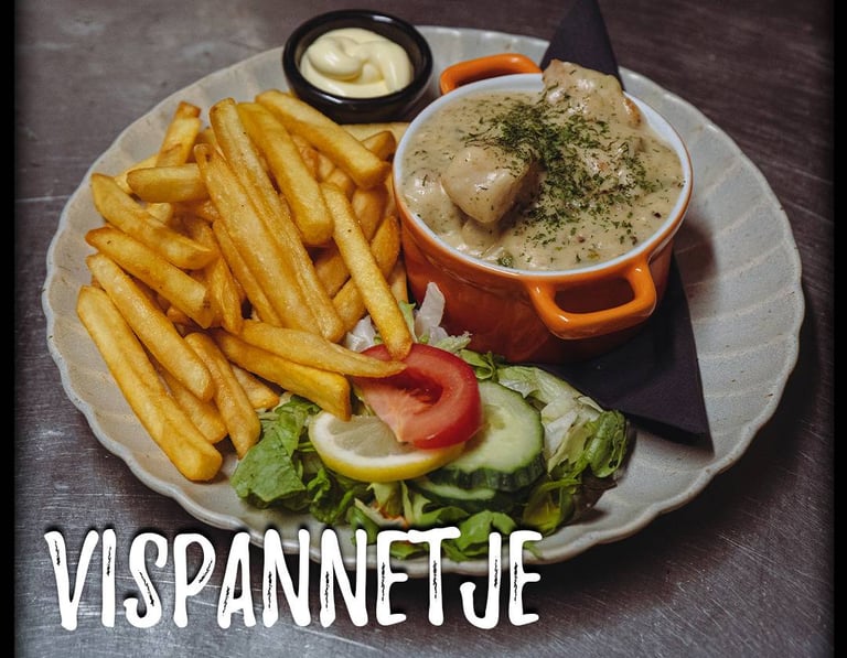 Pannetje met een mix van zalmfilet, witvis en gamba's in een heerlijke roomsaus met lente-ui, geserveerd met een italiaanse bol en salade.